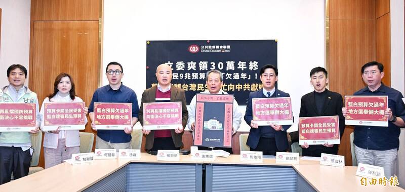 立法院新會期本月春節後開議,攸關中央政府運作的年度總預算等至今仍未付委審查、已逾164天,立法院長韓國瑜也表態將面諫總統及各院首長化解僵局;對此,民團公督盟及台灣基進、時代力量等小黨今召開記者會,譴責立委爽領高薪年終卻不審總預算,嚴正呼籲朝野應速再協商,別欠全台欠過年。公督盟理事長謝東儒指出,他看見日本眾議院選舉後相當感慨,不只是行政院年度總預算持續卡關,而造成此景的國民黨、民眾黨兩黨,卻仍將立法院當成行政院,更反諷國民黨嘲笑民進黨只會選舉,卻連人民民生、國安的基本需要都無法滿足,呼籲兩黨回歸理性,別讓國家預算在政黨鬥爭間淪為犧牲品。