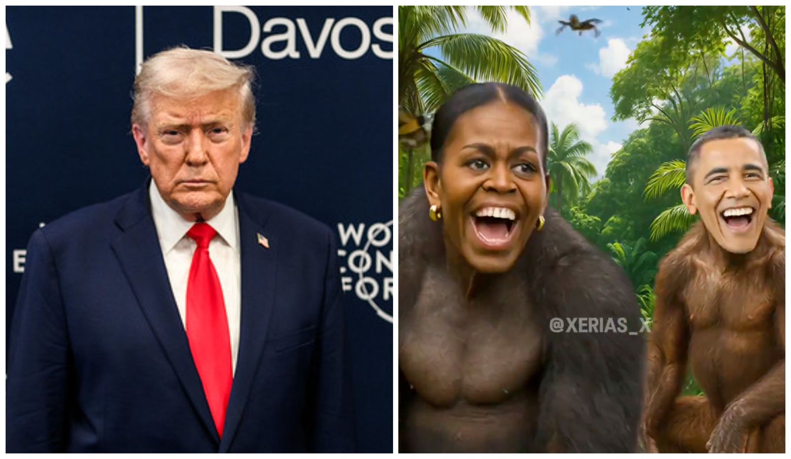 美國總統川普(Donald Trump)近日在自家社群平台Truth Social轉發一則爭議貼文,內容將前總統歐巴馬(Barack Obama)和其夫人蜜雪兒(Michelle Obama)描繪成猴子,踩到「種族歧視」大地雷。遭到撻伐後,貼文目前已刪除,白宮回應表示,川普沒有看過影片內容。