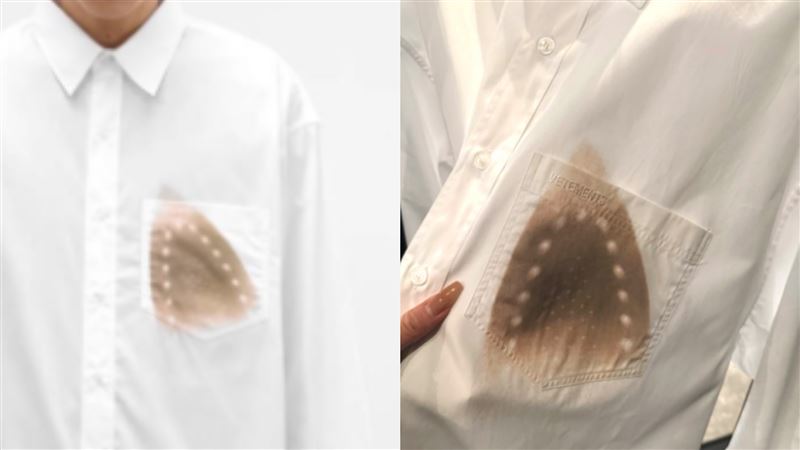 時尚品牌Vetements以「非主流、顛覆性」設計聞名,旗下有許多獨特的衣服。如今品牌再推「熨斗焦痕白襯衫」,純棉的襯衫上,胸口處有宛如熨斗燙焦的圖案,一件要價1139美元(約新台幣3.6萬)。該衣服的價格與極簡設計,均在網路上引發熱烈討論。