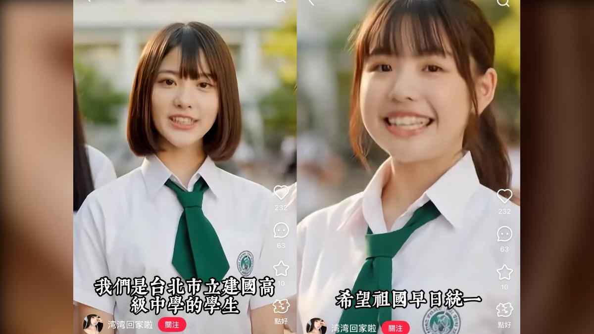 AI科技越發進步,網路流傳越來越多擬真的AI影片。小紅書近日有一段自稱是男校首府建國中學的「女學生」,影片中直呼「台灣是中國的,我們是一家人,希望祖國早日統一」。許多中國網友留言「歡迎回家」、「歡迎來大陸看看」。律師林智群則發文譏諷「建中出美女」。