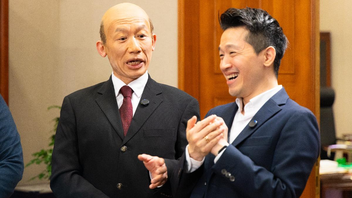 郭子乾在《鄉民大學問》化身「韓國魚」,前進總統府直搗總統府副秘書長何志偉辦公室,一見面,「韓國魚」立刻盯上牆上代表府內長官動態的「五長燈」,看到代表總統的燈號竟然是「藍光」,郭子乾立刻抓到吐槽:「你們不是綠營的嗎?怎麼亮我們藍營的燈?」嚇得何志偉趕緊解釋,這代表藍、黃、紅、白我們各路票源都要。
