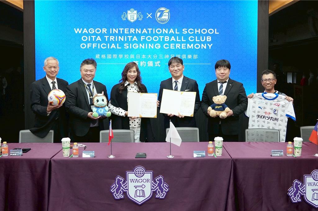 隨著世界盃足球賽的熱潮,近年來足球運動逐漸受到國人喜愛與關注,台中國際足球運動休閒園預計年底完工啟用,許多學校陸續引進足球教育。台中市葳格國際學校16日與日本大分三神足球俱樂部(Oita Trinita)簽約,正式