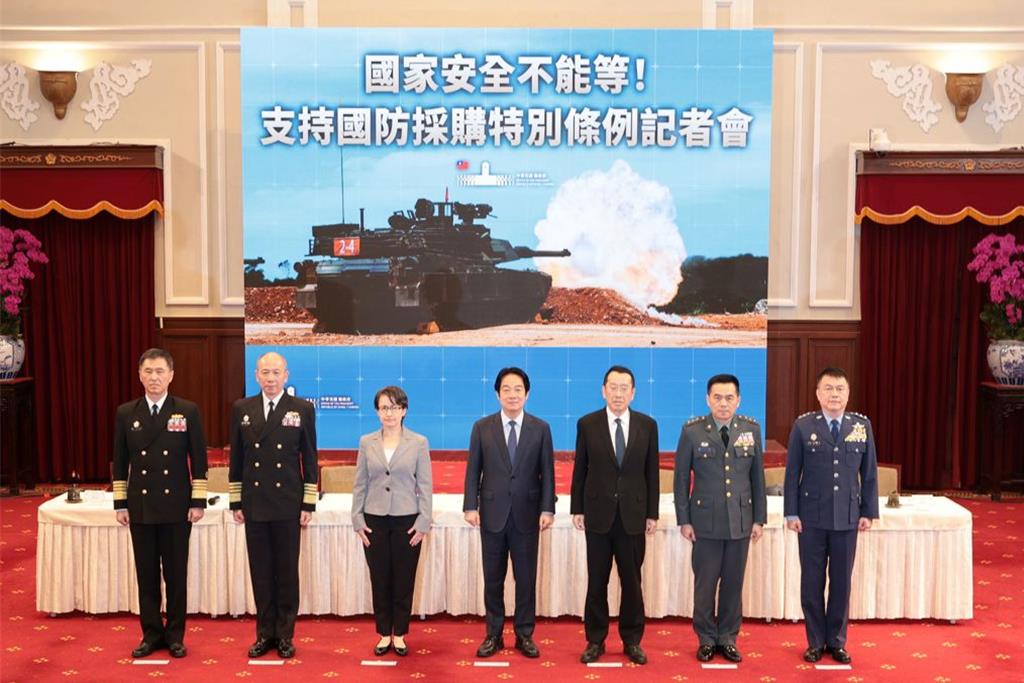 為了拿下1.25兆元國防特別預算,賴清德總統率領蕭美琴副總統、國防部長顧立雄、參謀總長梅家樹及陸軍司令呂坤修上將、海軍司令蔣正國上將和空軍司令鄭榮豐上將等,一字排開,親上火線舉行記者會。指控在野黨以「軍方