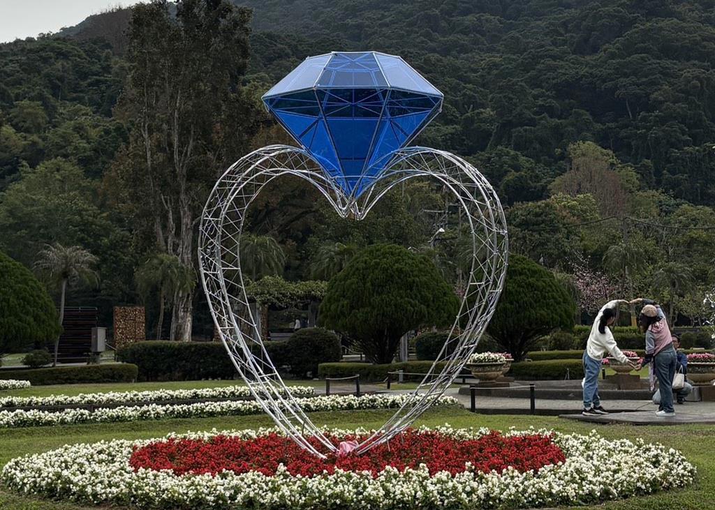 2026士林官邸鬱金香展以「浪漫滿園」為主題,展覽期間西式庭園以「浪漫相鬱」為設計主軸,設置象徵承諾與永恆的「鑽戒」裝置,邀請民眾牽起摯愛的手,在花前月下的絕美景致中許下諾言,並一同前往摩天輪3D打卡牆前合