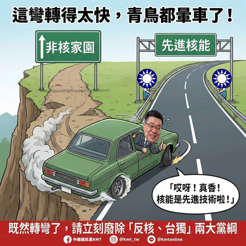 國民黨官方臉書今日傍晚發文指出,寧可缺電也要死抱「非核家園」的民進黨,終於被現實打醒,行政院長卓榮泰宣布「全面接受新式核能」,這道髮夾彎轉得太猛,連自家前客委會主委楊長鎮都痛批「感到被羞辱!」國民黨主席鄭麗文呼籲民進黨立刻廢除「反核」、「台獨」2大神主牌!國民黨指出,面對AI算力需求與停電危機,民進黨終於承認,愛不能發電,核能才可以,民進黨放著不到2元的便宜核電不用,硬要全民扛昂貴的綠能價差,「這種『敗家子』又頻出弊案的錯誤政策,究竟浪費了國家多少時間與金錢?」國民黨早做對的事,民進黨現在才跟上,如果沒有國民黨成功修法將核電廠年限延至60年,幫國家保留了這線「核能生機」,賴政府今天連「轉彎」的門票都沒有。