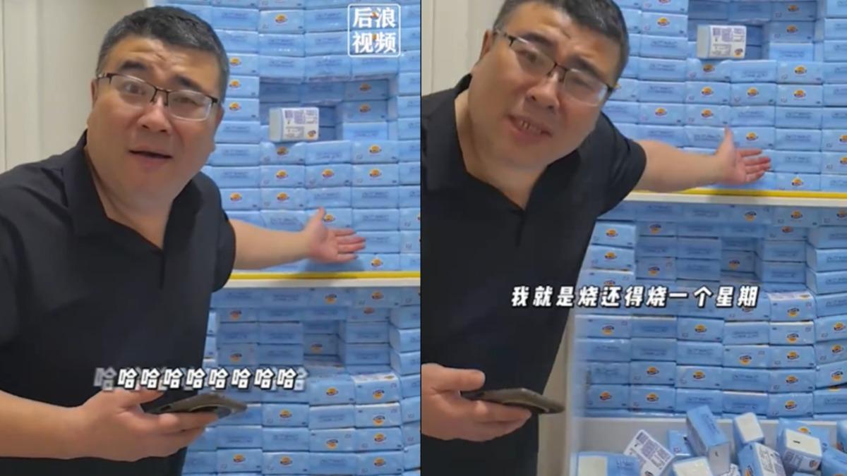 中國陝西西安一名男子日前在社群平台揭露妻子的「囤衛生紙癖」,稱自己妻子兩年前買了一堆衛生紙,囤滿一整面牆,但如今這堆衛生紙卻感覺還是沒動。他拍影片直呼「這玩意燒都得燒一星期」,引來大批網友留言。