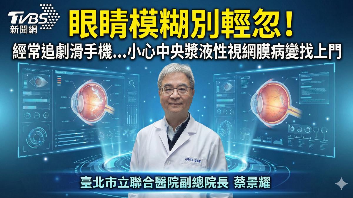 許多民眾放假在家追劇、滑手機、打電動、通宵聊天,加上應酬多、補品吃不停,您可能不知道,眼睛其實正在默默承受很大的負擔。若出現看不清楚、影像變形、視線中間有暗影,可別只當成視力疲勞或是沒睡好,因為這很有可能是中央漿液性視網膜病變的警訊。