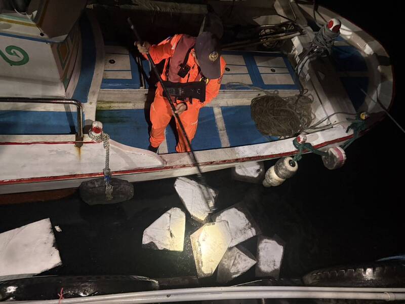 海巡第一三岸巡隊綠島安檢所人員於凌晨4點55分執行港區巡邏時,空氣中突然飄散出刺鼻的柴油味,巡邏燈光往水面一照,赫然發現平靜的海面上浮現一層厚厚的油膜,面積擴散到100平方公尺,威脅當地珍貴的海洋生態,立即展開清除,油污已全部清完。當時港內仍是一片漆黑,安檢所弟兄發現一艘船筏周遭的海水色澤異常,在燈光下泛著詭異的五彩油光,帶班人員意識到事態嚴重,判斷若不及時處理,隨潮汐擴散的柴油將重創綠島清澈的水質。安檢所立即啟動「油污應變機制」,一邊向上級與海洋保育署通報,一邊火速組織人力展開清污行動。