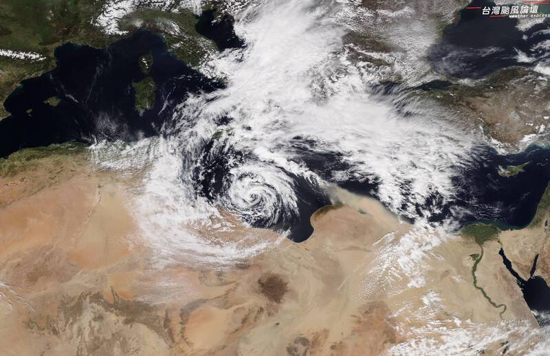 氣象粉專指出,近日在非洲北部罕見生成「地中海氣旋」且還登陸利比亞,粉專說明「地中海氣旋」需要「天時地利」的條件,湊合機率極低,平均1至2年才約出現1次,不過其體積雖嬌小,但能量高度集中,破壞力絕對不容小覷!「台灣颱風論壇|天氣特急」(以下簡稱颱風論壇)發文分享,本月18日一個罕見的「地中海氣旋」Jolina登陸非洲北部利比亞。粉專表示,「你可能會驚訝,印象中陽光明媚的地中海度假勝地,竟然也會出現類似颱風的東西?」