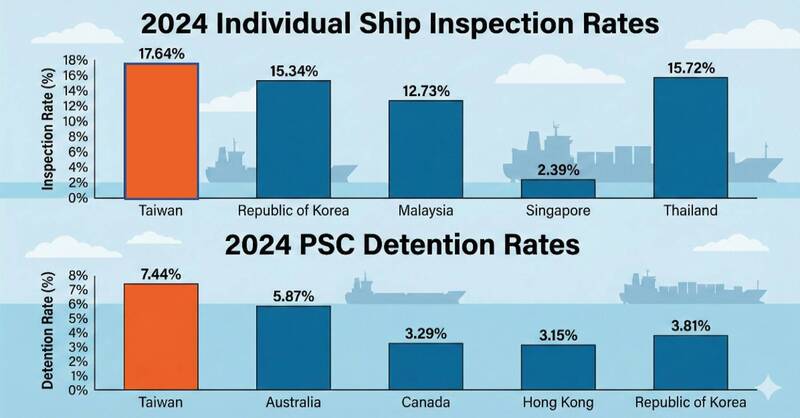 船舶監理成效為國家海事管理的重要表徵,接續東京備忘錄(Tokyo MOU)2025年公布港口國管制績效年報,我國於船旗國管理表現卓越,在64個列入評比國家躍升至「白名單」全球第6名,創下歷年最佳排名紀錄,績效領先英法德等海事大國,並達成連續8年穩居白名單的殊榮。航港局表示,在公私協力下,國輪已連續2年於東京備忘錄地區「零留置(Zero Detention)」,預期今年5月公布的最新評比,我國將順利蟬聯東京備忘錄9年白名單,成為全球船舶監理標竿國家之一。