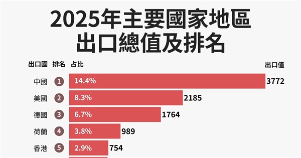 根據世界貿易組織(WTO)最新統計,2025年全球出口總值26.3兆美元,較2024年增加7.2%