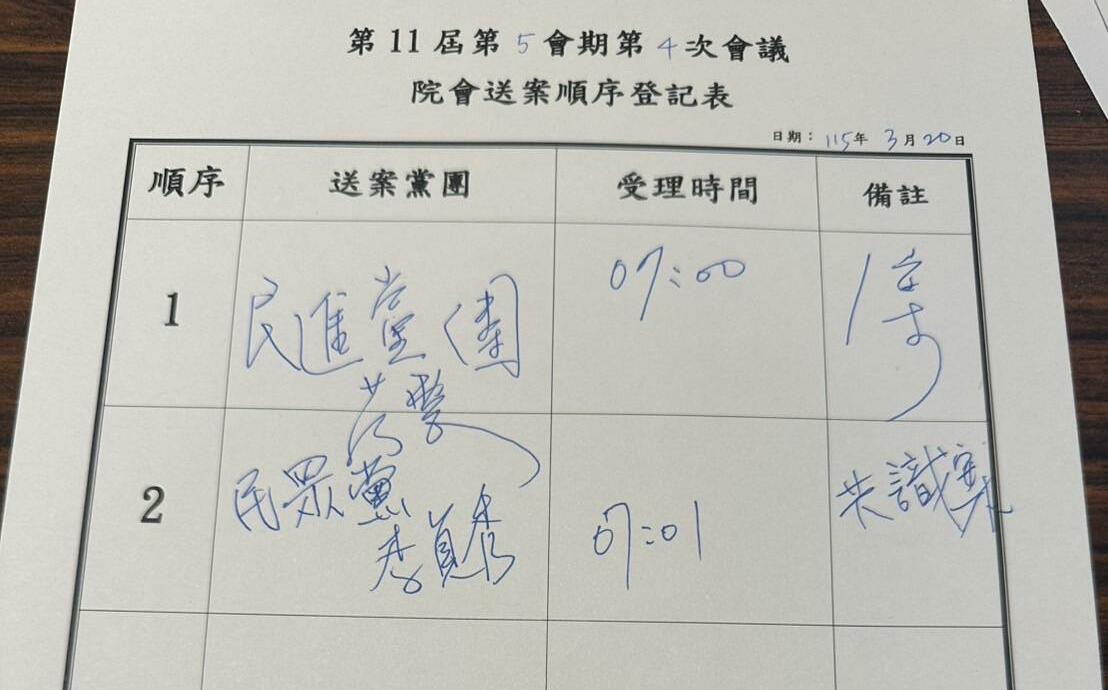 今(20日)是立法院會,綠委范雲、白委李貞秀都是一大早就到議場遞案,卻也出現意外插曲,李貞秀登記提案時,一旁助理提醒她要寫「共四案」,李貞秀寫成「共識案」,特別的烏龍也搞得議事人員一頭霧水。綠委陳培瑜受訪時也質疑,不知道民眾黨團為什麼要放任一個連遞案規則、議事程序都搞不清楚、拿著台灣身分證說是台灣公民的人,進來當立法委員?