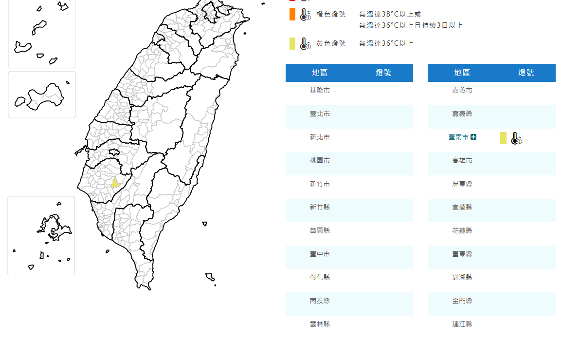 今年首發高溫特報來了!氣象署下午指出,今(30)日白天台南市為黃色燈號,有可能出現達36度以上高溫。