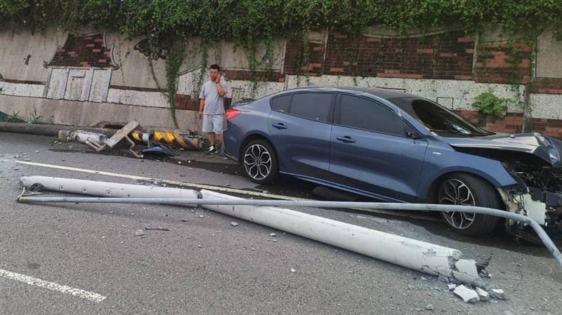 台中市東勢區驚傳恐怖車禍!今(18)日上午8時許,有輛轎車行經東關路五段時,因不明原因不斷往外側偏移,最終猛力撞上路邊電線桿,撞擊力道猛烈,電線桿因此斷成3截,轎車車頭也被撞開花幾乎全毀,更波及臨停在路邊的車輛,現場汽車零件散落一地,所幸未造成人員傷亡,至於事故發生詳情,有待警方進一步調查釐清。