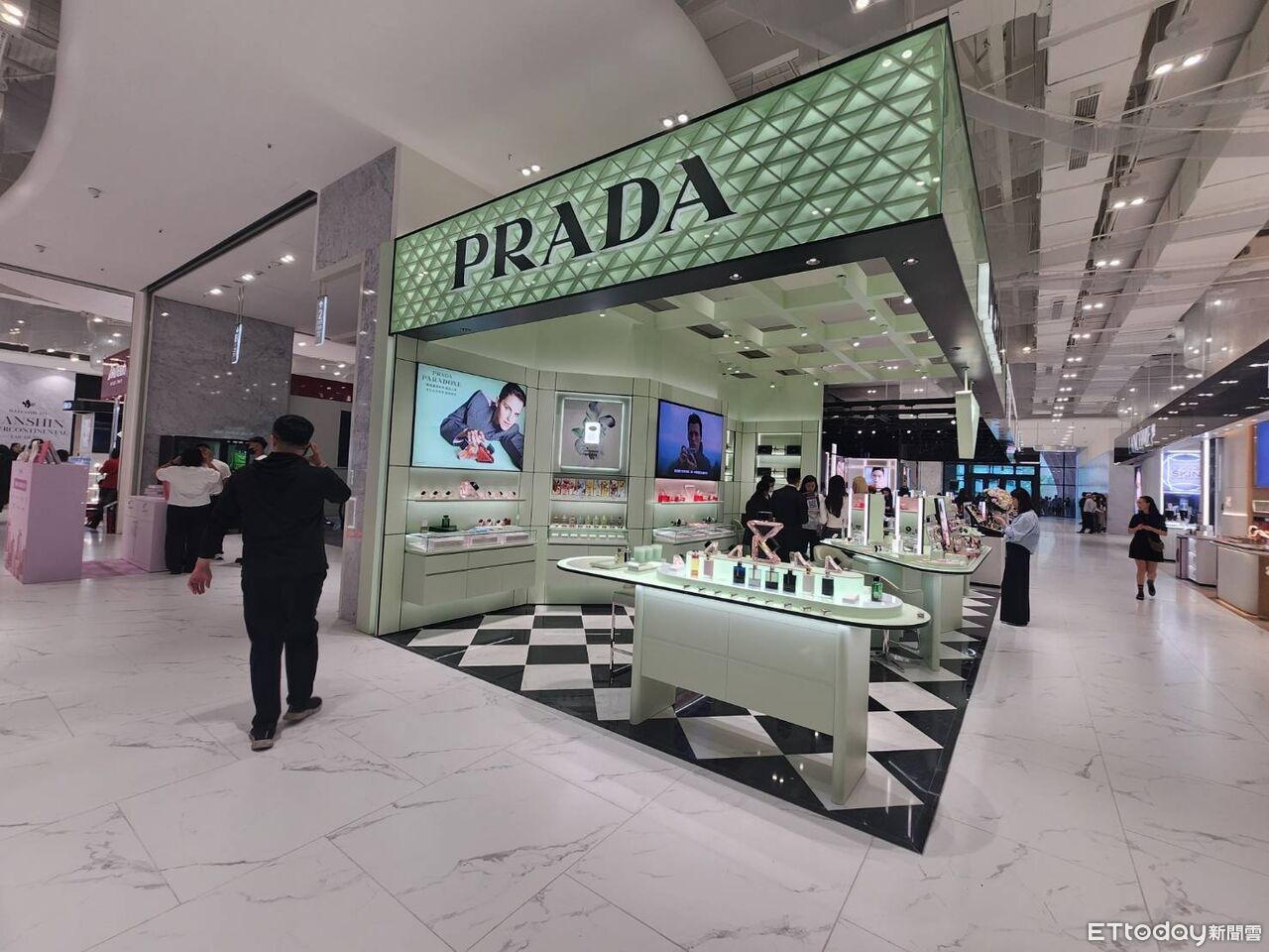 中部全新地標漢神洲際購物廣場今天開幕,12點30分開幕時間未到,館外已擠滿消費者準備朝聖。漢神內部也搶先曝光,一樓彩妝專櫃亮相讓女性瘋狂,但可惜一線精品幾乎缺席,而一樓也還有不少精品櫃位仍在施工中。