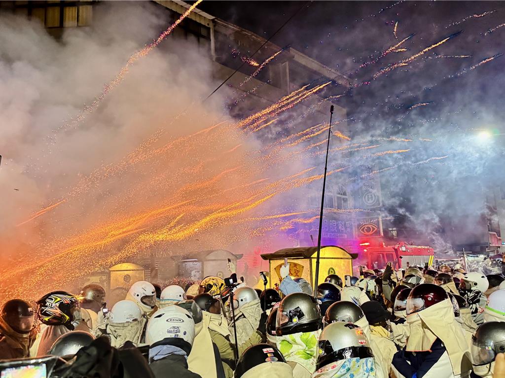台東元宵節活動今天熱鬧登場,包括逾20場的炮炸肉身寒單 (邯鄲)及70個陣頭遶境,細雨中台東市炮聲不絕於耳