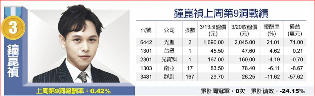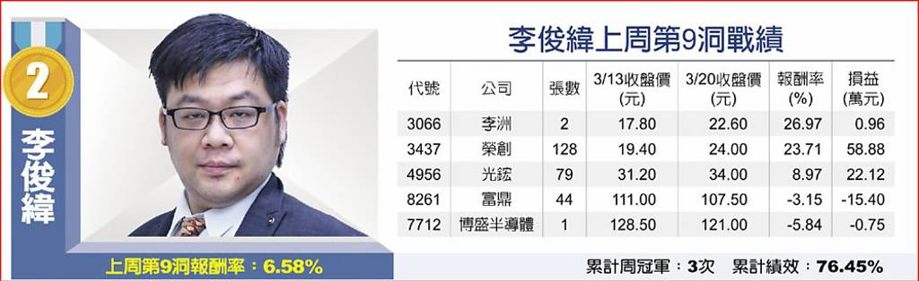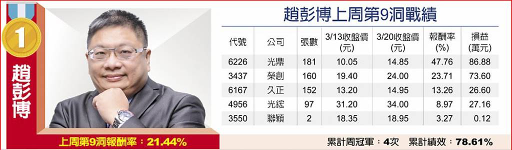 本周關鍵一檔:新鋼(2032)1150320(日線圖)本周第10洞投資組合操盤心法台股上周走勢震盪,資深台股分析師趙彭博指出,若加權指數未能連續站上月線,則建議投資人操作上宜以風險控管優先,而在中小型股強勢領漲下,本周投組全數布局低於50元之銅板股,首選新鋼(2032)、倍微(6270),再加入慶騰...