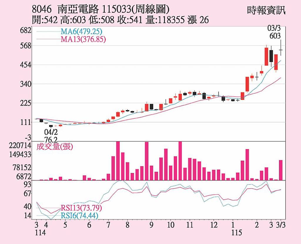 南電(8046)受惠ABF載板與BT載板需求同步升溫,2025年第四季每股稅後純益(EPS)1.86元,優於市場預期,帶動股價急漲,惟短線獲利了結賣壓湧現,20日股價震盪整理,終場收541元,下跌3.57%。法人指出,南電第四季營收達111.7億元,年增41.9%,成長主因來自交換器訂單持續強勁,推...