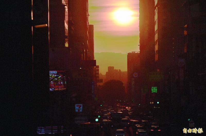 浪漫奇景「曼哈頓懸日」將登場!根據中央氣象署2026懸日預報預告,台中市西區公益路從下週日(22日)至週二(24日)連3天下午5點至6點左右之間有懸日景觀,下次懸日要等到4月30日,在台北市忠孝東西路(新生高架以西)觀賞。中央氣象署預估,台中市西區公益路(民權路以西)下週日至週二將可見懸日美景,夕陽逐日約較前1天早4分鐘運行到達街道,仰角亦較前1天稍高,也就是說下週日下午5點48分到6點8分、週一下午5點44分至6點4分、週二下午5點40分到6點可見懸日。