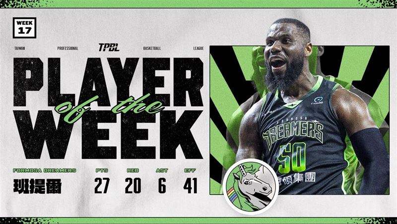 福爾摩沙夢想家洋將班提爾(Ben Bentil)上週在關鍵對戰中,幫助球隊客場擊敗臺北台新戰神,不僅幫助夢想家取得對戰4連勝,也憑藉全能數據,獲選為 TPBL 第17週單週最有價值球員(MVP)。