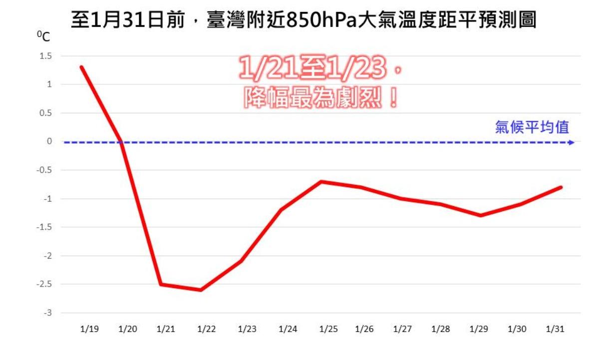 今(19)日東北季風增強。氣象專家林得恩表示,今日晚起,強烈大陸冷氣團開始南下,至月底期間,前後分別受強烈大陸冷氣團及東北季風等天氣系統影響,氣溫表現均明顯低於氣候平均值,會一路涼冷到1月底。