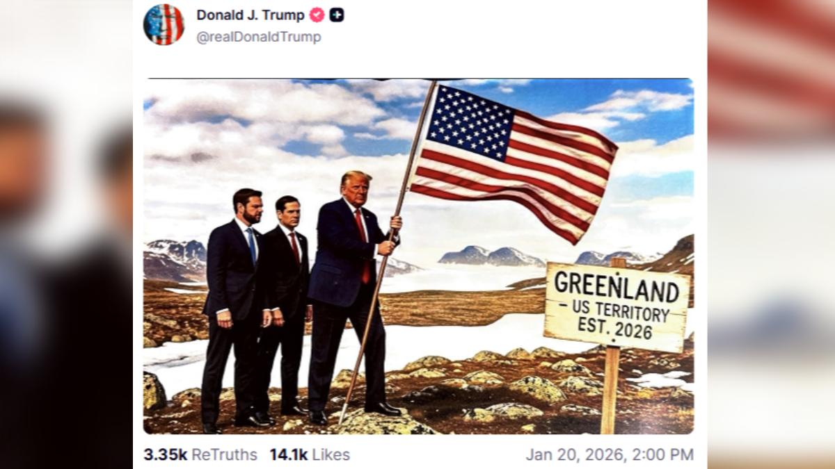 美國總統川普今天矢言拿下格陵蘭「絕不回頭」,且不排除動用武力奪取。川普不但上傳在格陵蘭插上美國國旗的AI生成圖,還在社群...