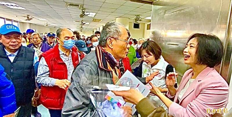 爭取中國國民黨提名參選台中市長的立法院副院長江啟臣及立委楊瓊瓔,今天上午皆前往市場拜票,並發送春聯。有民眾送上大蒜、包子...