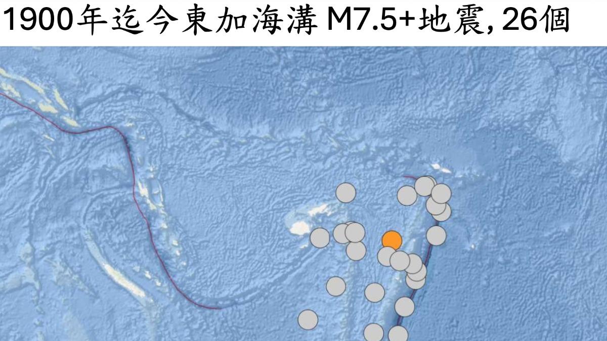 島國東加台灣時間今(24)日12時37分爆發規模7.5強震,震源深度236.7公里。地震專家郭鎧紋說明,這起是今年規模最大地震,也是今年第二起規模7以上強震,東加地區的地震活動相當頻繁,地球已經進入地震活躍期,之後要留意規模8以上強震。