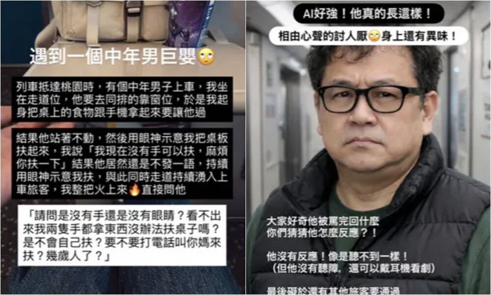 YouTuber泰辣Tyla個性直爽,在網上擁有大批粉絲,最近他在限動分享,搭高鐵時因桌板問題,忍不住嗆了中年男乘客「沒有手還是沒有眼睛?」舉動卻掀起爭議,有網友就開批,明明是泰辣擋到他人,卻反過來責怪不說,甚至進行外貌與情緒性攻擊,讓人觀感大扣分。