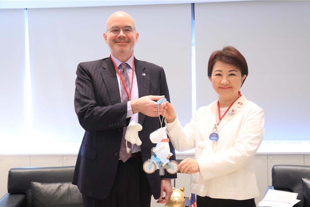 崑山科大參加2026臺南車展以自行研發電動汽車登場展出,副校長鐘俊顏(右)受邀參加剪綵後亦親臨該校展區加油打氣,期間臺南市經發局局長張婷媛(左)亦前往該校展區參觀,鐘俊顏也在現場說明介紹該校為國家級電動車晶片模組及充電裝研發製造人才培育基地。 崑山科大近年來積極投入智慧交通與永續能源技術,2024年...