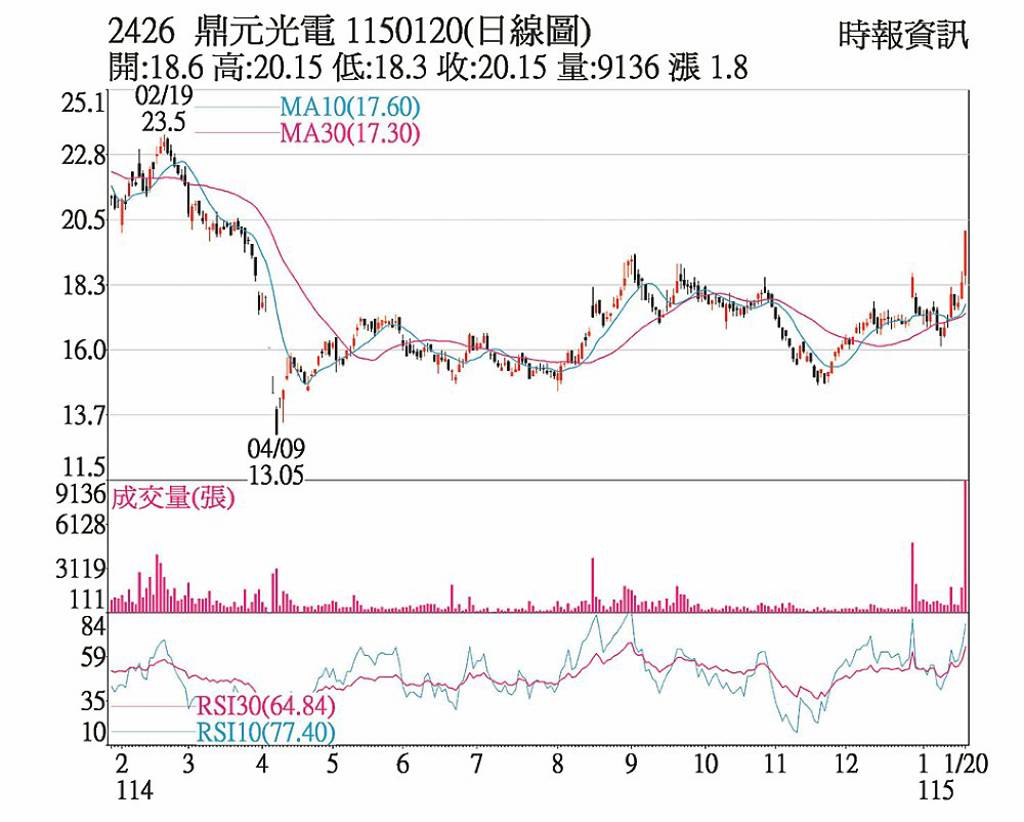 今(20)日元晶、強茂等個股獲外資看好,買氣爆棚,反觀友達等個股則出現賣壓湧現走勢。《工商財經網》精選今日盤面上最熱門具話題性的十檔熱門股,助讀者掌握最新市場動態及資金流向。 1/20 台股雷達Top 10 漲跌幅 成交量(張) 原因說明 友達(2409) -3.77% 614,756...