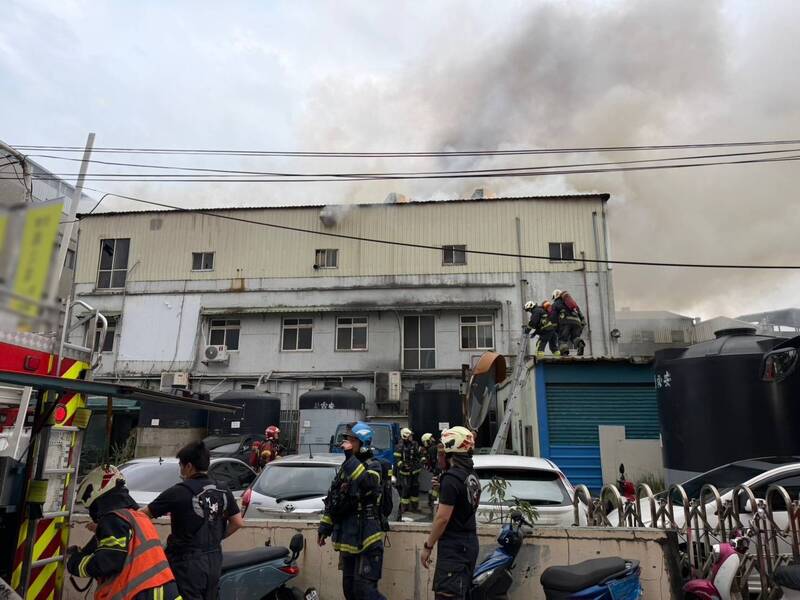 新北市新莊區民安路一間工廠今天下午4時許發生火警,由於內部存有俗稱化骨水的氫氟酸,警消加強防護裝備灌救1個小時才撲滅火勢,呼籲附近住戶關閉門窗,外出戴口罩。