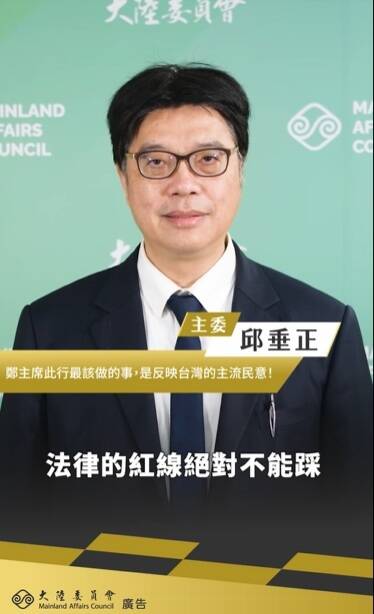 國民黨主席鄭麗文7日率團訪中,將在北京會見中共總書記習近平。陸委會主委邱垂正今日強調,嚴正反對為了換取赴中交流的門票,做出傷害國家主權尊嚴,出賣國家利益,及踐踏台灣自由民主制度行為。赴中交流須嚴格遵守兩岸條例,未經政府授權,不得簽署任何政治性協議與涉及政府公權力項目的協商,法律紅線絕對不能踩。陸委會發布影片,邱垂正現身說法指出,兩岸只有在對等尊嚴、相互尊重,不預設任何政治前提下,才能進行正常、健康有序交流。「我也要強調,政黨交流不能取代官方機制!」