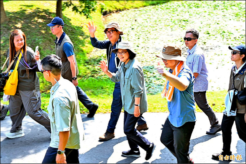 前總統蔡英文卸任後持續活躍於社群平台,近來更頻頻與民進黨縣市長參選人一起爬山,變身為「登山界網紅」;昨早她南下高雄,但這回不爬山,而是由市長陳其邁、立委賴瑞隆陪同,一起到高雄最夯的果嶺自然公園健行並野餐,蔡英文熱情的逐一詢問沿途民眾是哪裡人,若是遇到外縣市的立即化身「高雄推廣大使」,喊話「要運動的都來高雄」。一日健行兼野餐 陳其邁、賴瑞隆陪同