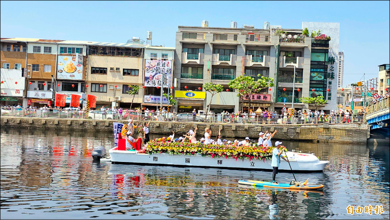 水陸並進祈福 神尊沿水路穿橋前行 信眾朝聖 重現百年前盛況適逢台南運河開通一百週年,百年難得一見的宗教盛事隆重登場。祀典大天后宮昨天舉辦「台南媽祖開運河一百年世紀巡禮」,以水陸並進方式展開祈福儀式,重現百年前熱鬧盛況。