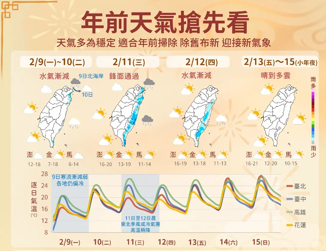 寒流來襲,全台氣溫急降!根據「天氣風險 WeatherRisk」指出,這波寒流為今年開春以來最強冷空氣,並受華南雲系與東北季風影響,北部及宜蘭地區白天呈現「濕冷」,入夜後雨勢將趨緩。然而,隨著乾冷空氣侵襲,輻射冷卻效應將使氣溫越夜越低,預估今晚至明(9)日清晨,北北基桃地區低溫有望驟降至6度,成為本波寒流的最低溫點。隨著寒流減弱,明天白天氣溫將略微回升。