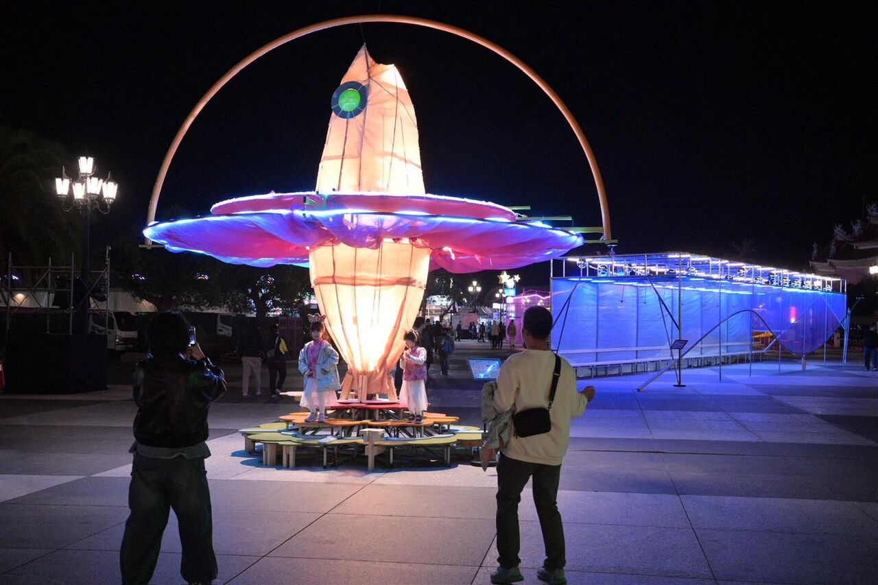 臺南市新營年度光影盛事「2026新營波光節」8日晚間在新營天鵝湖公園盛大開幕,由臺南市長黃偉哲親自主持啟燈儀式,與現場民眾一同點亮湖畔夜色。