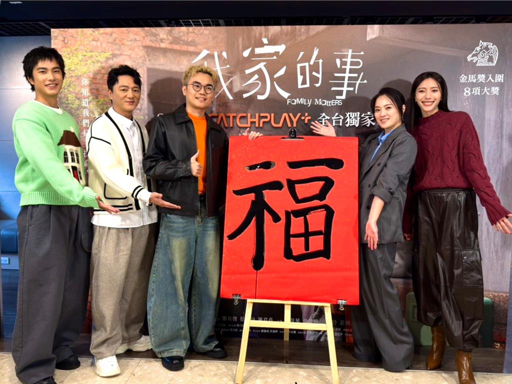 金馬入圍8項大獎的《我家的事》即將在2月4日於catchplay+獨家上架,20日導演潘客印、主演藍葦華、高伊玲、曾敬驊以及黃珮琪一同寫書法迎春。過年即將到來,孝順的曾敬驊曾說過希望能夠帶沒有出過國的父母出國,沒想