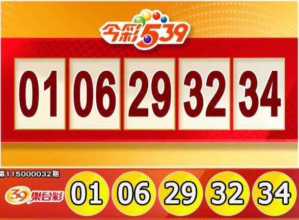 今彩539第115032期開獎,中獎號碼01、32、06、34、29。3星彩中獎號碼506,4星彩中獎號碼5879。