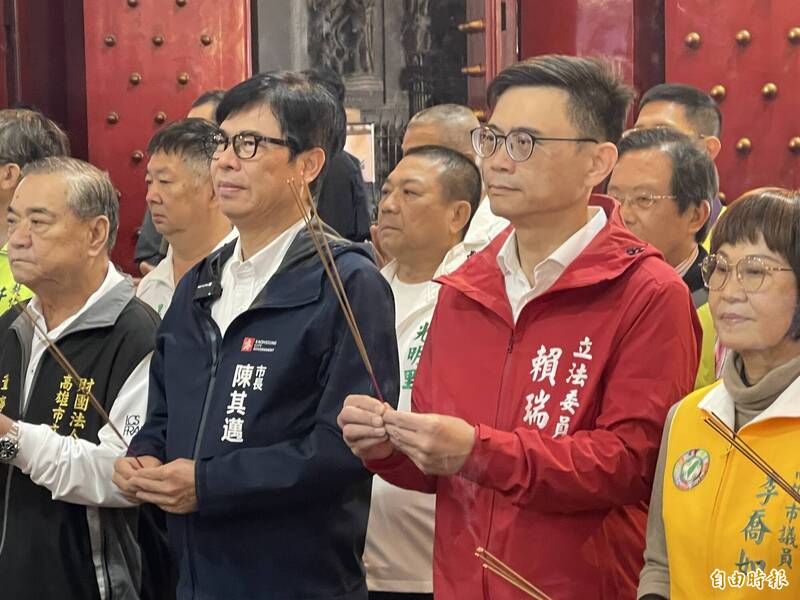 高雄市長陳其邁循往年例子,年前到各廟宇參拜,今(7)日到鹽埕區信仰中心文武聖殿,民進黨市長初選出線的立委賴瑞隆也陪同一起參拜,針對今年度總預算持續遭藍、白陣營聯手封殺,陳其邁擔心現階段正是高雄轉型關鍵期,建設經費卻一直未到位,盼大家也為立法委員們加油。陳其邁表示,今年也會循往例到各個廟宇走春參拜,希望說能夠祈求神明保佑,未來高雄一年能夠國泰民安、風調雨順,選擇文武聖殿起跑的原因,是因它是鹽埕區的信仰中心,從100年到114年,不管是救護車、消防車等等的捐贈、慈善事業,可以說是不落人後,因此也特別來表達感謝。