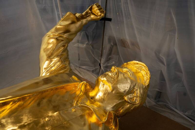 一群加密貨幣(cryptocurrency)圈支持者集資打造了一尊高達4.6公尺的鍍金川普雕像,準備送進川普的高爾夫球場向偶像致敬。豈料,這尊名為「唐巨神」(Don Colossus)的巨型雕像,如今卻只能尷尬地在倉庫裡「躺平」。背後原因,竟與川普本人推出官方加密貨幣、引發市場資金轉向有關。粉絲幣遭「官方幣」輾壓 尾款沒著落