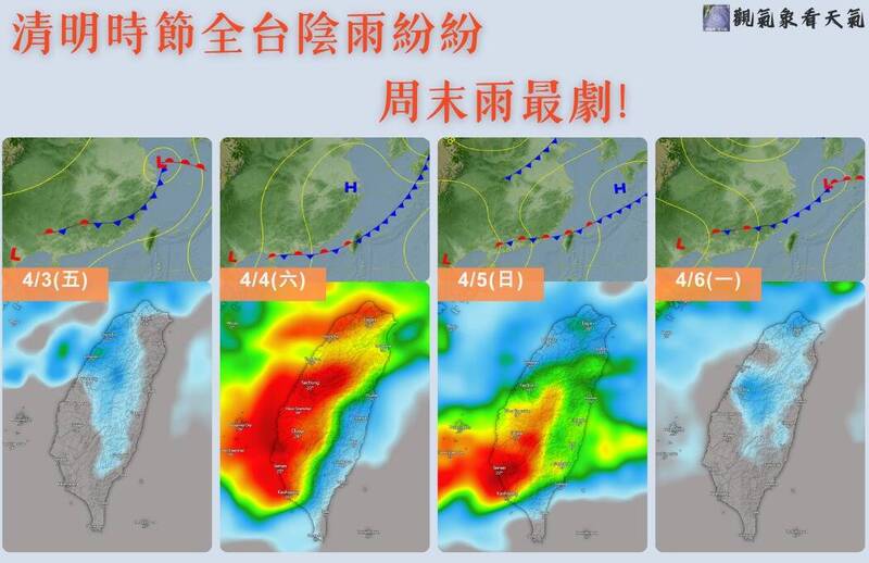 連假出遊、通勤注意!受鋒面影響,中央氣象署4日凌晨1時30分發布大雨特報。氣象署表示,受鋒面通過影響,全台易有短延時強降雨,今日台中以北地區有局部大雨發生的機率,清晨至上午雨勢最為明顯,提醒民眾出門務必攜帶雨具,並留意交通安全。