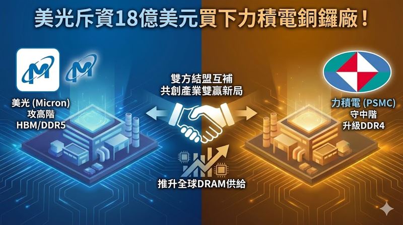 記憶體產業迎來震撼彈!根據TrendForce最新調查,美商美光(Micron)宣布以18億美元總價,收購台廠PSMC(力積電)位於銅鑼的廠房與無塵室設施。這樁交易不僅是單純的資產買賣,更確立了雙方將展開長期的「代工與技術」深度結盟。TrendForce預估,隨著這波新產能在2027年開出,全球DRAM供給版圖將出現結構性上修。