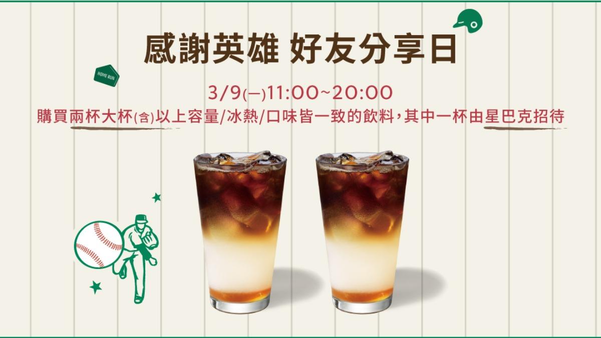 終於贏韓國!中華隊在經典賽以5:4的成績拿下勝利,各大超商、星巴克和家樂福趕緊推出優惠,一起共同慶祝開心時刻,《TVBS新聞網》整理以下各家優惠,星巴克明(9)日推出好友分享日,大杯以上買1送1,7-ELEVEN特大杯思樂冰買1送1,特大杯厚乳拿鐵買2送2,全家APP輸入優惠碼大杯阿里山拿鐵買2送1,萊爾富則是推出11款韓式鮮食和限定買1送1優惠,家樂福也有好康,推出大杯美式買1送1。