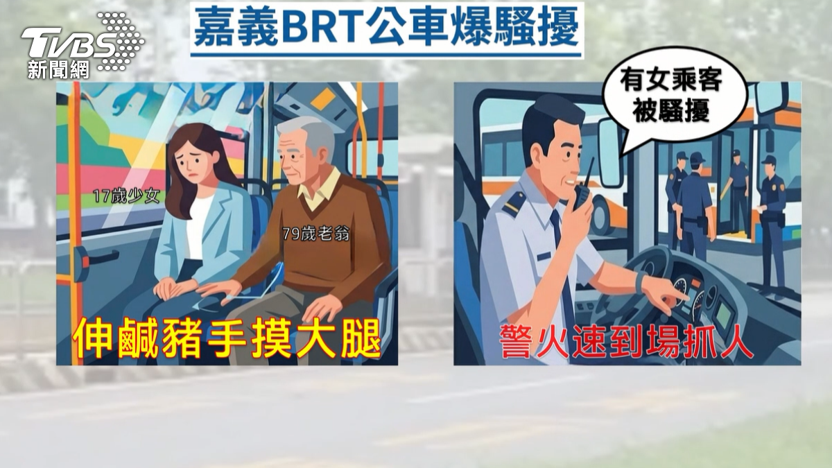 嘉義市BRT公車驚傳騷擾案!17歲少女搭車時遭79歲老翁偷摸大腿,嚇得當場崩潰痛哭,所幸她勇敢向司機求助,司機立即停車報警。老翁被帶回警局時否認碰觸,但現場有人證,業者將調閱車內監視器釐清案情。