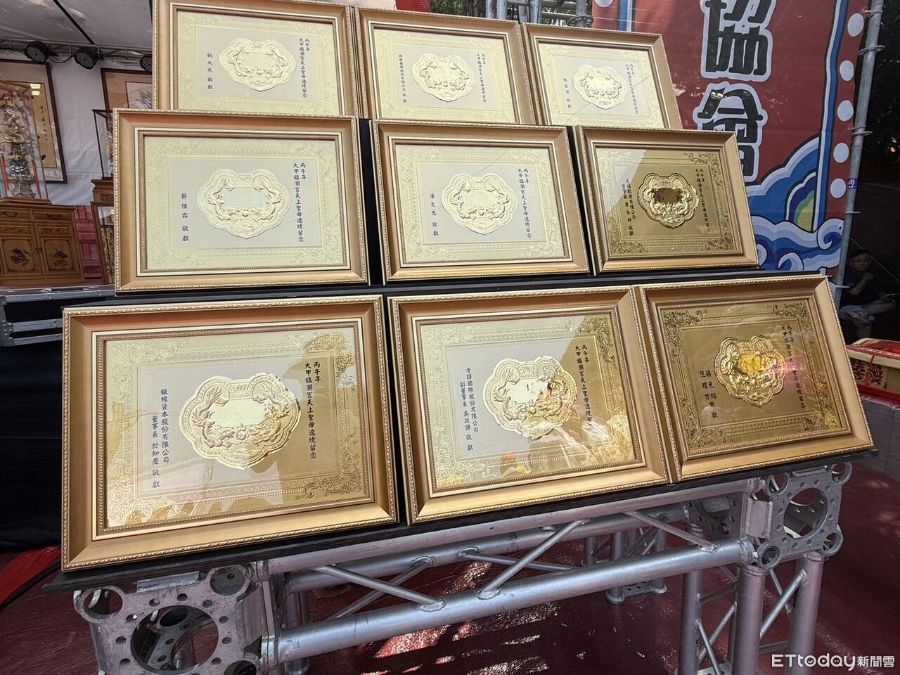 大甲鎮瀾宮媽祖9天8夜遶境進香活動前天(17日)子時起駕,吸引60萬名信眾參與隨行,昨天鑾轎隊伍進入彰化市,預計今天傍晚將抵達雲林縣。中華王靈慈善協會長年舉辦接駕服務,今年除沿途設置點心攤供民眾食用,更準備價值逾160萬元的18面金牌,準備敬獻媽祖,團隊目前於西螺大橋廣場旁等待迎接大甲媽,而10多面金牌在陽光下熠熠生輝,十分搶眼,已吸引不少香客前往圍觀。