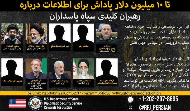 美國政府提供最高1000萬美元(約新台幣3.1億元)懸賞金,徵求有關伊朗多名高階軍事與情報官員的資訊,包括新任最高領袖穆吉塔巴.哈米尼(Mojtaba Khamenei)。美國國務院表示,提供線索者除可能獲得獎金,也可能獲協助搬遷安置。《路透》報導,根據美國國務院網站,這項懸賞計畫鎖定10名與伊朗伊斯蘭革命衛隊(IRGC)相關的官員。該部隊成立於1979年伊朗伊斯蘭革命後,對最高領袖效忠,主要任務是保護什葉派神權體制。