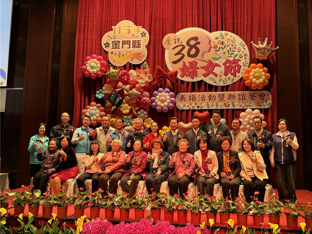三八婦女節前夕,金門縣政府今(7)日於金湖飯店盛大舉辦「115年度模範婦女及模範婆媳表揚活動」,由縣長陳福海親自頒獎表彰從各鄉鎮評選推薦的5對模範婆媳及15位模範婦女。將由國民黨提名參選下一屆金門縣長寶座的立