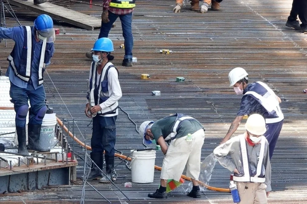 國家中山科學院嘉義i○二九新建工程擬在水上鄉中庒營區旁蓋彈藥庫,昨委託包商拆鷹架,施工過程鷹架整面倒塌,工人綁著安全繩索...